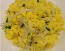 3.炒锅倒油烧热倒入蛋液炒散盛出备用。