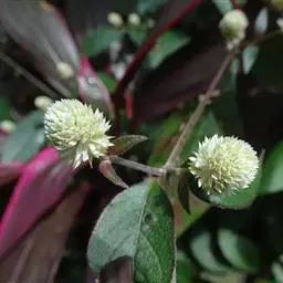 紫杯苋是多年生草本,高15-20厘米,叶对生,叶色紫红至紫黑色,极为雅致。头状花序密聚成粉色小球,无花瓣。高度30cm -60cm × 30 -50cm ,质感中至细,紫杯苋茎叶铜红色,冬季开花,花 乳白色,小球形,酷似千日红。 圆 叶洋苋茎叶呈鲜红色。光照中性植物,日照 60%-100% 均能生长。