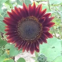 是颜色最黑的向日葵之一, 一种深沉,柔软的酒红色,几乎是黑色的中心。 植物生长1.2-1.8米高。无花粉。