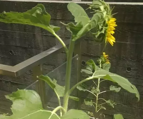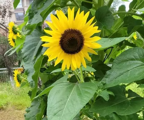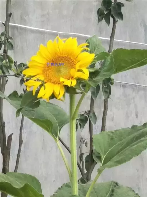 单杆葵花,高达4米。有25厘米宽的明亮的黄色花盘。