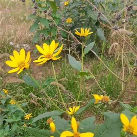 薄叶向日葵的种子被鸣禽吃掉。麝鼠吃树叶和茎干,用茎干建造它们的住所。花头的中心有管状花盘,周围有放射状的花,这些花通常呈带状。射线花颜色黄色,这种植物没有刺,盘花数21-50。