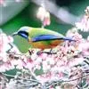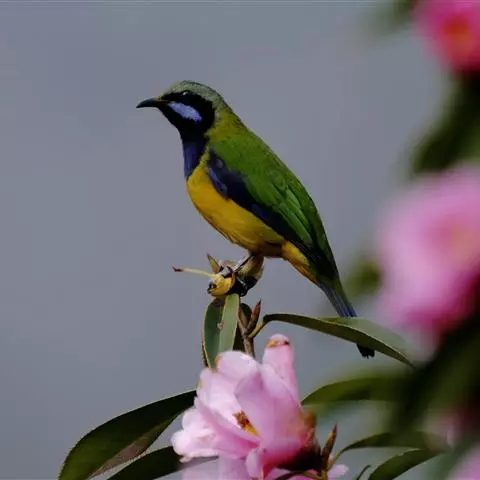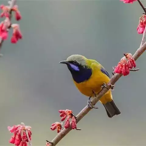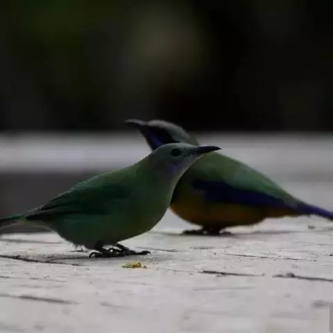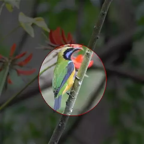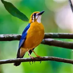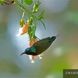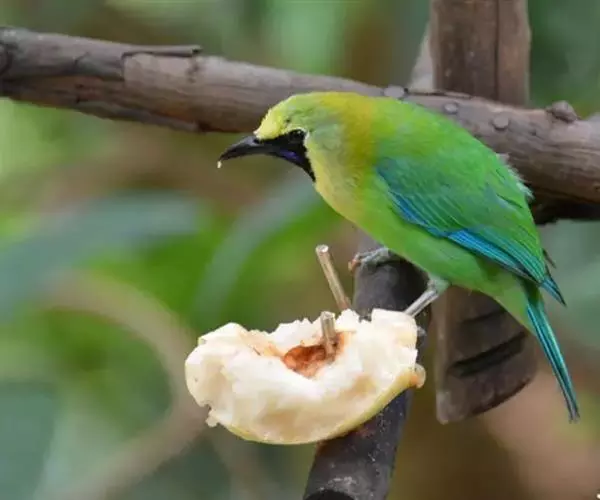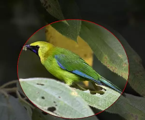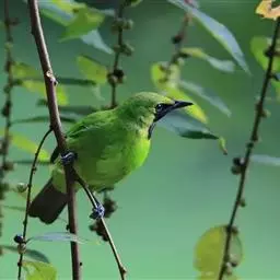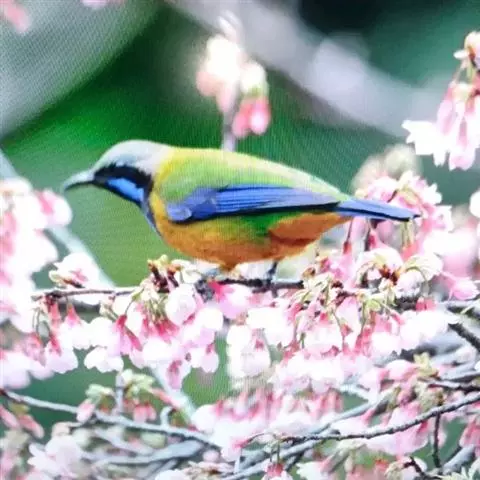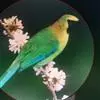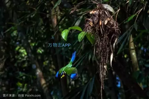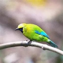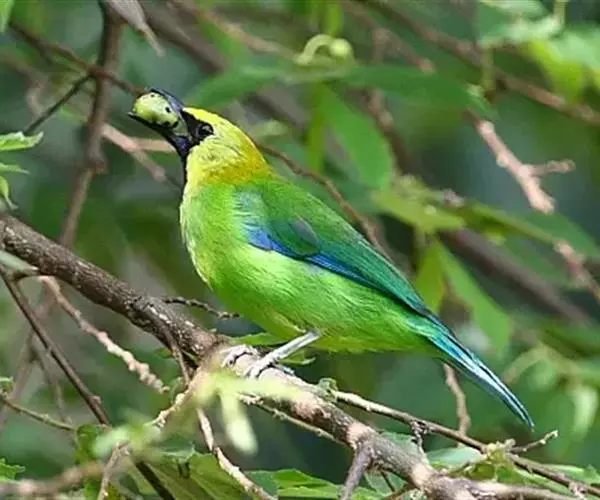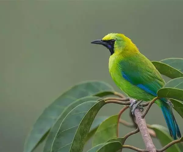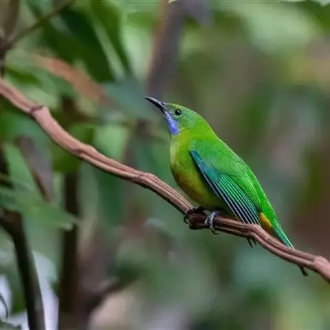 蓝翅叶鹎:小型鸟类,体长15-18厘米。雄鸟通体草绿色,尾蓝绿色,肩和翅亮蓝 色,胸缀有黄色,…