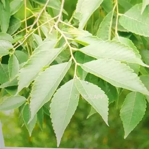 榉树 乔木,高达30米,胸径达100厘米;树皮灰白色或褐灰色,呈不规则的片状剥落;当年生枝紫褐色或棕褐色,疏被短柔毛,后渐脱落;叶薄纸质至厚纸质,大小形状变异很大,卵形、椭圆形或卵状披针形,长2-9厘米,宽1-4厘米,先端渐尖或尾状渐尖,基部有的稍偏斜,稀圆形或浅心形,边缘有圆齿状锯齿,具短尖头,侧脉8-14对;上面中脉凹下被毛,下面无毛。叶柄长4-9毫米,被短柔毛。
