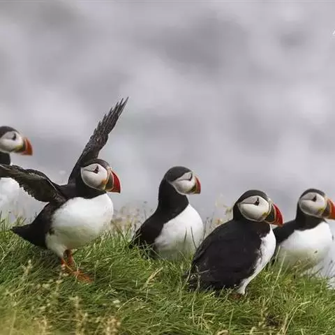 角海鹦:是鸻形目海雀科的鸟类,体重581-648克,体长约32厘米,翼展18-20厘米。是一种身体…