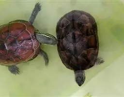 二 、产蛋 孵化:6~8月份产蛋,蛋壳上有不透明乳白色小圆点的是受精蛋,收集和孵化时乳白色部分必须朝上。孵化温度以30℃左右为宜,沙子含水量5%~25%,埋藏深度5cm~20cm。一般45 天左右 可以孵出稚鳖。如有温水池,可将池水放浅至30cm~40cm,水温保持30℃左右,在20cm的孵化盆中铺7cm 厚的沙子固定种蛋,再盖上5cm 沙子,放入水池中13cm~14cm深,不要进水。