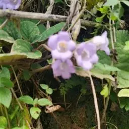 聚伞花序伞状,成对腋生,通常具5-10花;花序梗长4-8.5厘米,被锈色毡毛,果期逐渐脱落至近无毛;苞片2,卵形,长7-9毫米,宽4-6毫米,被锈色或灰色短毡毛;花梗细,长5-7毫米,被疏柔毛或近无毛。花萼5裂至近基部,裂片相等,线形,长约4毫米,近无毛。花冠狭钟形,淡紫色,稀紫红色,长约1.3厘米,直径约9毫米,外面无毛;筒短而宽,长约7毫米,直径约6毫米;檐部二唇形,上唇比下唇短,长6.5毫米,2裂,下唇长3.5毫米,3裂,裂片近相等,全部裂片近圆形,长3-4.5毫米,宽约4毫米,顶端圆形。雄蕊2,着生于花冠近基部,花丝上部膨大似囊状,具腺状短柔毛,下部弯曲变细而扁平,长4-5毫米,花药大,狭长圆形,两端尖,长3毫米,宽约1.5毫米,顶端连着;退化雄蕊2,长1.2-1.5毫米,着生于距花冠基部2毫米处。无花盘。雌蕊无毛,长约1厘米,子房狭长圆形,长约6毫米,直径约1.2毫米,花柱长4毫米,柱头1,头状。