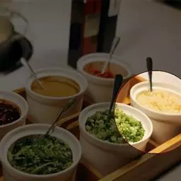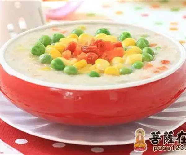 3. 将玉米糊与果脯汁,果脯肉,柠檬汁混合在一起,装入碗中摊凉后送进冰箱。