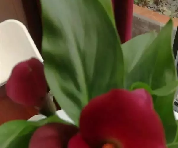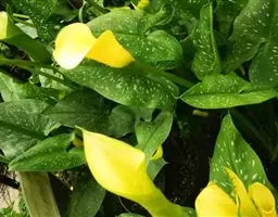 彩色马蹄莲属于旱生型花卉。其营养体是块茎和球茎,而白色马蹄莲的营养体是根茎.这是两个种群间最重要的区别。彩色马蹄莲叶片基生,具有长叶柄。叶型有箭型、戟型,先端尖锐。全缘,有的品种叶表有透明斑点。佛焰苞依品种不同,颜色各异,有金黄、橙黄、紫红和粉红等亮丽色彩。