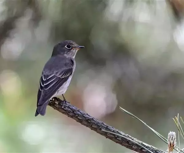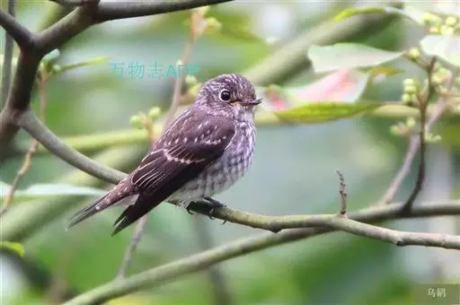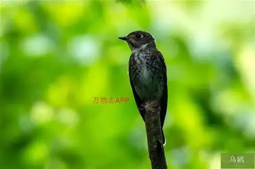 乌鹟(学名:Muscicapa sibirica):体重9-15克,体长12-14厘米。是一种体型略小的烟灰色鹟。上体深灰,翼上具不明显皮黄色斑纹,下体白色,两胁深色具烟灰色杂斑,上胸具灰褐色模糊带斑;白色眼圈明显,喉白,通常具白色的半颈环;下脸颊具黑色细纹,翼长至尾的2/3。诸亚种的下体灰色程度不同。亚成鸟脸及背部具白色点斑。虹膜深褐色,嘴黑色,脚黑色。