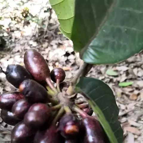 叶纸质或近革质,长圆状倒卵形,长7-30厘米,宽3.5-12.5厘米,顶端急尖或短渐尖,有时有尾尖,基部浅心形;侧脉每边10-17条,在叶面扁平,在叶背凸起;叶柄粗壮,长5-8毫米。