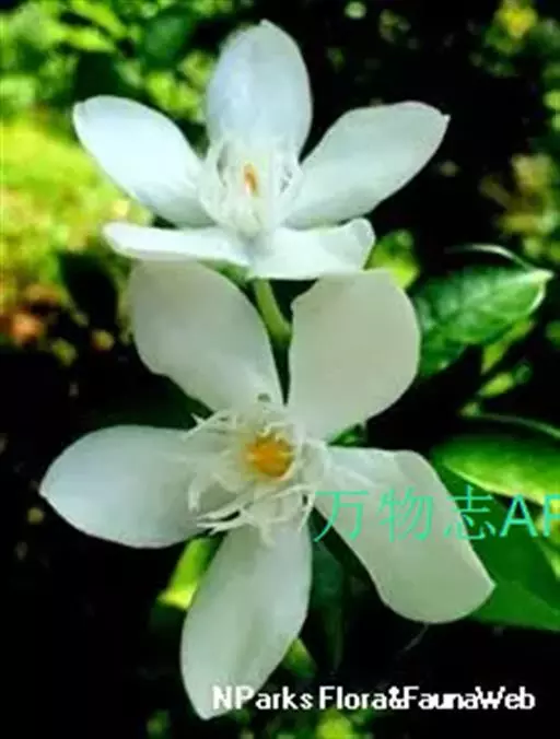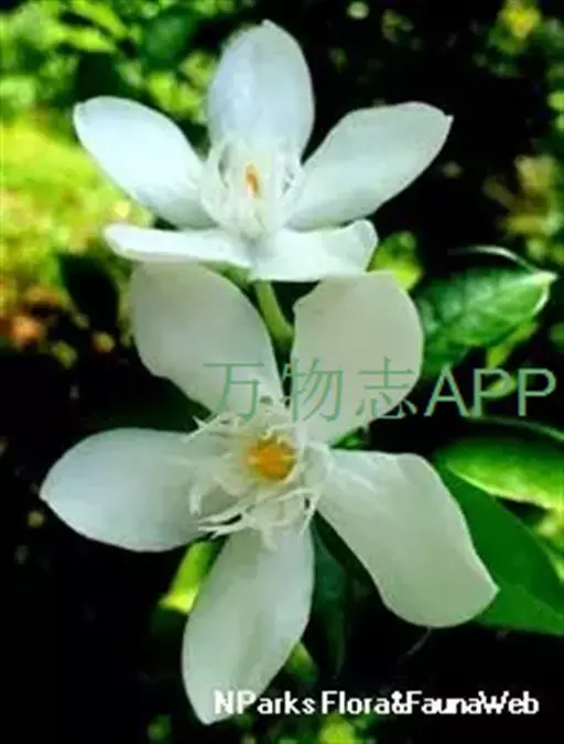 植株高度50~200㎝,枝条四散生长,略呈弯曲状。叶片对生,革质似榕树叶。开花于叶腋,花朵白色,花径约3~4㎝。花瓣5枚,近心部处有白绢状的副花冠,是花朵一大特色,黄色雄蕊聚合包住雌蕊。花无香味,花形、花色清新,为夏季新兴木本盆花。热带地区几近全年开花。