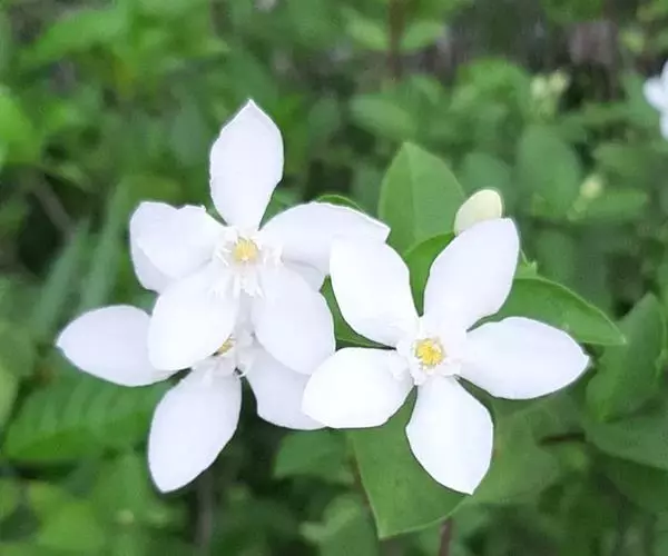 锡兰水梅 Wrightia antidysenterica,是夹竹桃科倒吊笔属的常绿灌木。产于东南亚、斯里兰卡(锡兰)。在泰国,人们会采摘它的花来做成花串挂车上或者拜佛。