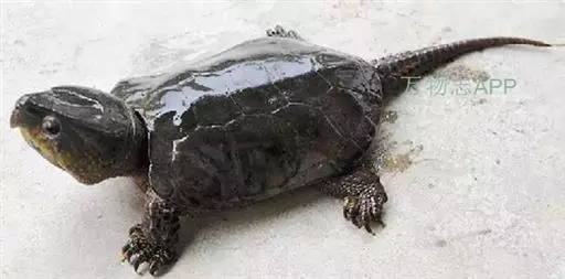 平胸龟 (学名:Platysternon megacephalum)是平胸龟科、平胸龟属动物。体扁平,头大,不能缩入壳内。头背覆以完整的盾片,上、下颚钩曲呈鹰嘴状。背甲长卵圆形,前缘中部微凹,后缘网,具中央嵴棱。腹甲近长方形,前缘平截,后缘中央凹入。背腹甲之问有下缘盾。四肢强,被有覆瓦状排列的鳞片。前肢5爪,后肢4爪。指、趾问具蹼。尾长,几乎与体长相等,具环状排列的长方形大鳞。头、背甲、四肢及尾背均为棕红色、棕橄榄色或橄榄色。腹甲生活时带橘黄色。雄性头侧、咽、颏及四肢均缀有橘色斑点。