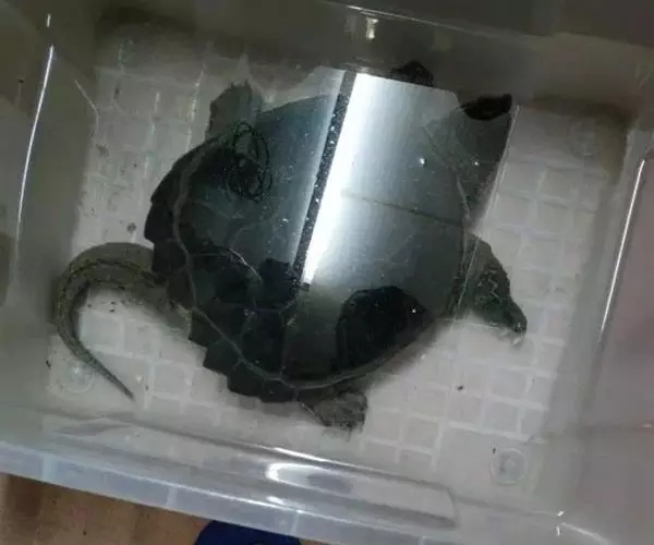 二、对新引进或捕捉来的龟要“驯化”,先暂时不要放入池中,应干放,适当泼洒清水,保持湿润,投喂活食,观察其吃食、活动正常再放入池中。光照以室内自然光或室外凉极下漫射光即可。
