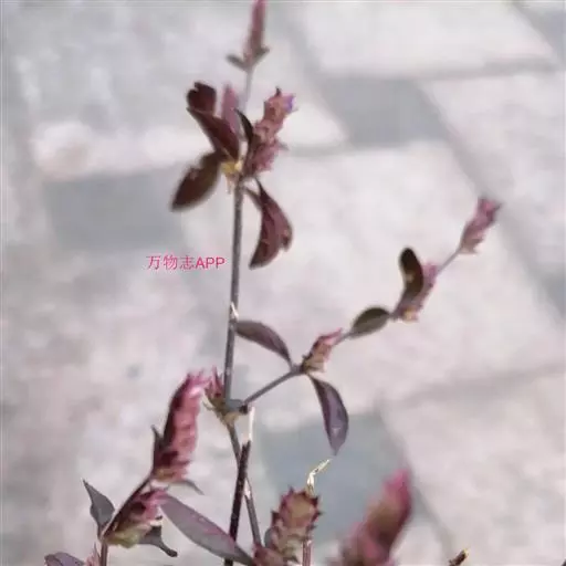 一年生细弱草本,高达50cm。全株被毛。茎上部多分枝,茎下部斜卧,节部稍膨大,带紫红色。叶对生;叶柄长3-4mm;叶片椭圆状长圆形至长圆状披针形,长1.5-5cm,先端尖,基部楔形,全缘。穗状花序顶生或腋生,长1-2.5cm,粗约6mm,花偏生于一侧;苞片2型,有花的苞片倒卵状椭圆形,长约3mm,背面短柔毛,具宽膜质边缘和睫毛,无花的苞片椭圆状披针形,作蓖齿状排列;小苞片2;花白色带淡紫色;萼5裂,裂片狭披针形;花冠长约4.5mm,二唇形,上唇先端凹,下唇3浅裂;雄蕊2,花药2室,药室不等高,较低的1室具小距;子房有胚珠4。蒴果卵形或长圆形,长约3mm,开裂时胎座自蒴底弹起。种子4颗,扁圆形,黑褐色。花期11月-翌年春季。