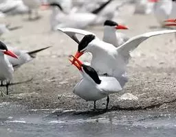 中华凤头燕鸥,是鸻形目燕鸥科凤头燕鸥属鸟类。中等体形,嘴橘黄色,尖端黑色;额在繁殖期为黑色,…