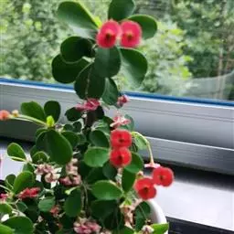 虎刺梅:别称铁海棠,是蔓生灌木植物。茎多分枝,长60-100厘米,直径5-10毫米,具纵棱,密生硬…