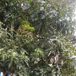 芒果白粉病多发生于开花结果期,为害花序和叶片。