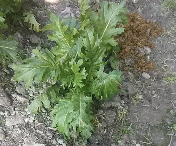 基生叶倒披针形或长圆状倒披针形,不裂或稍有缺刻,有不整齐锯齿或重锯齿,上部及顶部茎生叶小,长圆形,全缘,皱缩。