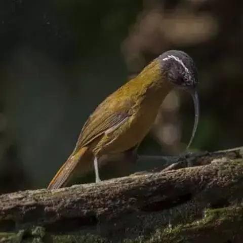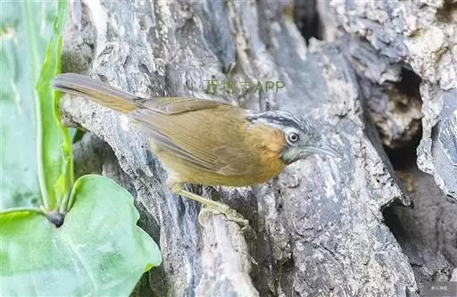 玉山噪鹛中等体型的褐色鸟类。白色长眉纹及髭纹显著;顶冠灰而具白色的鳞状斑纹;脸侧及颏褐色,…
