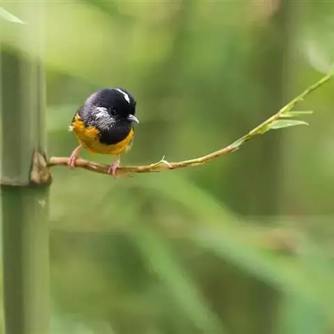 金头穗鹛小型鸟类,体长10~11厘米,是一种黄色小鸟。头顶金黄色有黑色纵纹,眼先黑色,…