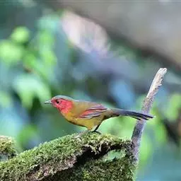 红翅薮鹛是噪眉科、薮鹛属中型鸟类,体长21-24厘米。头顶灰褐色,头侧和颈侧赤红色,上体橄榄褐色,…