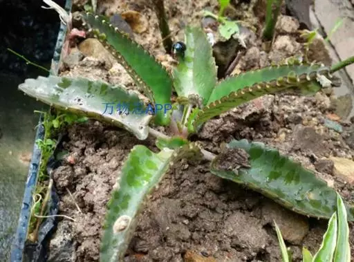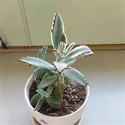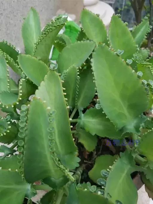 宽叶落地生根是最常见的多浆植物。其叶片肥厚多汁,边缘长出整齐美观的不定芽,形似一群小蝴蝶,飞落于地,立即扎根繁育子孙后代,颇有奇趣。用于盆栽,是窗台绿化的绿化的好材料,点缀书房和客室也具雅趣。
