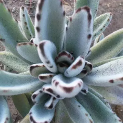 褐斑伽蓝是景天科伽蓝菜属的多年生多肉类植物,茎直立,多分枝,叶生于枝上,肉质叶片匙形,…