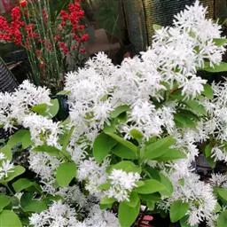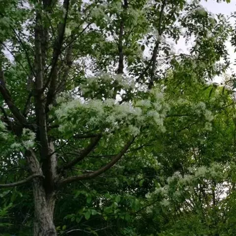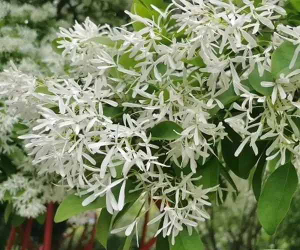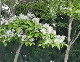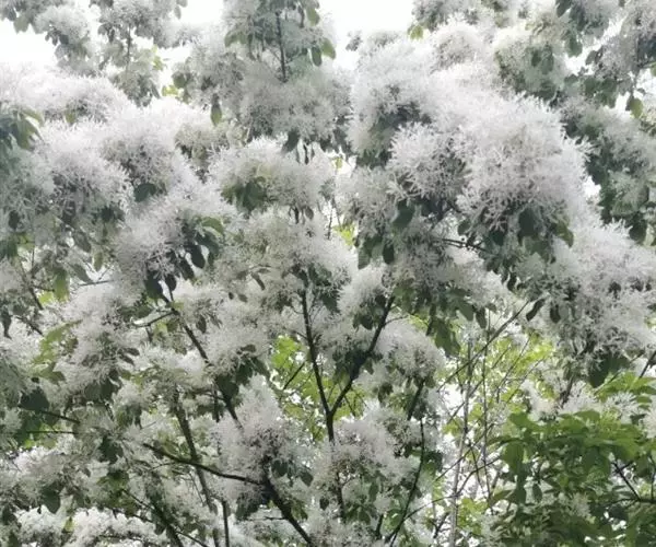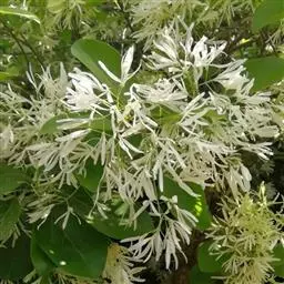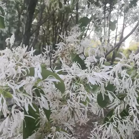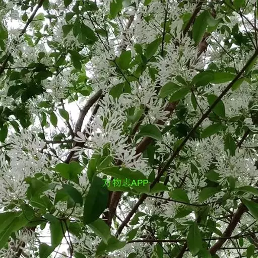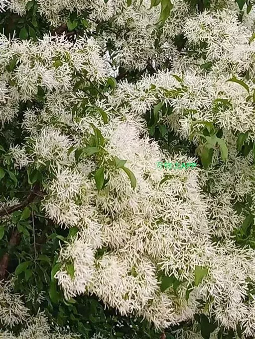 流苏树(学名:Chionanthus retusus Lindl.et Paxt.):是木犀科流苏树属的植物,是落叶灌木或小乔木,树形高大优美,枝叶茂盛,初夏满树白花,如覆霜盖雪,清丽宜人。秋季结果,核果椭圆形,蓝黑色。近看,流苏树的叶为单叶对生,叶片椭圆形或长圆形,全缘,近革质。雌雄异株,圆锥花序生于侧枝顶端;花冠白色,4深裂,裂片线状倒披针形,雄花雄蕊2,雌花柱头2裂。花期3-6月,果期6-11月。
