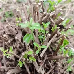 扦插繁殖一般多在7月-8月进行,选取当年生半木质化枝条,将其剪成长300px-375px的插穗,插穗上口平,下口呈马蹄形。基质选用沙壤土,使用前用五氯硝基苯进行消毒,消毒后进行一次大水漫灌,待基质呈大半墒状态时,可进行扦插,扦插前插穗沾ABT生根剂,株行距为250px×500px,扦插后每7天浇一次透水,每天早晚进行一次喷雾,9点至下午18点要进行遮阴,入冬前在圃地内满施一次牛马粪,浇足浇透封冻水,用塑料薄膜搭设拱棚,以利于其安全越冬。第二年加强水肥管理,第三年春天可进行移栽。