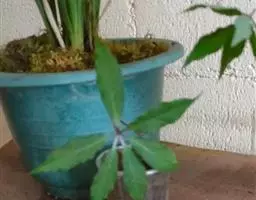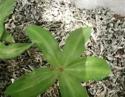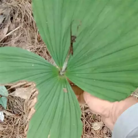 植株高60-100(-160)厘米;茎较纤细,基部稍粗,连叶鞘直径约1厘米,被棕褐色、有网眼的纤维网。叶折扇状,长矩圆状披针形至狭长矩圆形,长约30厘米,宽1-4(-8)厘米,两面无毛,先端长渐尖或渐尖,基部收狭为柄,叶柄长达10厘米。