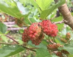 桑菌核病是果桑一种主要病害,俗称桑白果病,属真菌类病害;桑树开花时病菌开始侵入,结果后病状显现,颜色呈白色;病果无商品和食用价值。果桑品种较易发病,如不及时防治,严重地块发病率将高达90%以上。