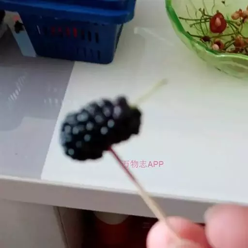 9、购买的时候要注意颗粒比较饱满,厚实,没有出水,比较坚挺的,是比较好的,红的桑葚会比较酸,所以紫色的最甜,表明已经成熟。