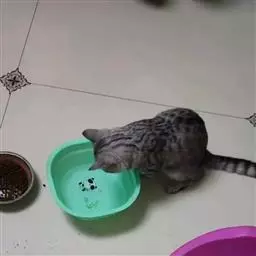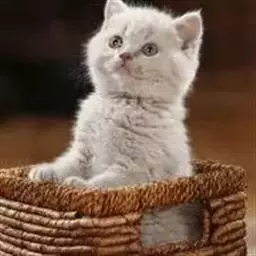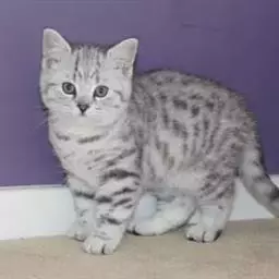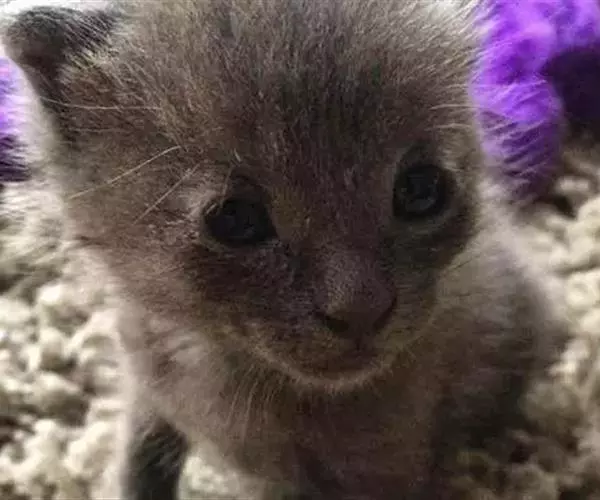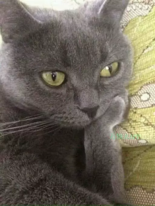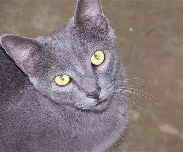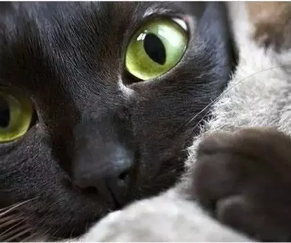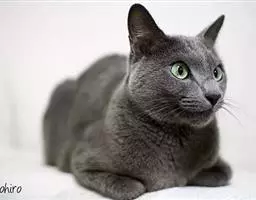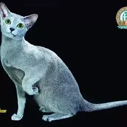 蓝猫:(毛发独特,质地似海豹皮,颜色应是中等深度的纯蓝色,泛出银色光泽,鼻子和掌垫也是蓝色,但幼猫除外,杏仁状眼镜应是非翠绿色。
