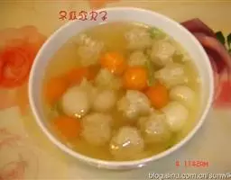 7. 煮熟调味:再煮大概十五分钟,加盐即可,肉丸不会松散,汤也很清很鲜美。