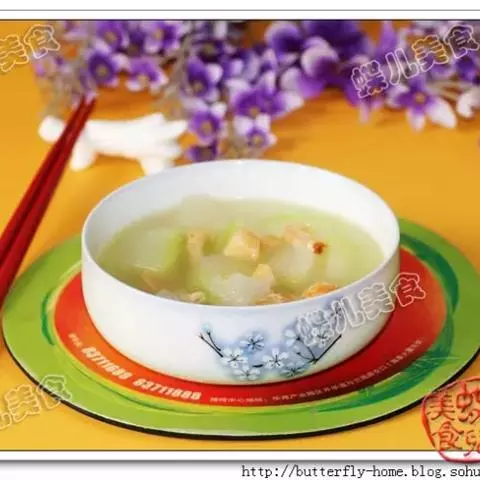 冬瓜汤流行于我国江南地区及北部,简单易做,是百姓日常食用的一种汤羹,可配米饭、包子等食用。