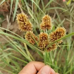 香附子是一种恶性农业害草,但香附子的地下根茎具有很高的药用价值。香附子为莎草科植物莎草的干燥根茎,具有理气理气解郁、调经止痛的功效,主要用于肝郁气滞、消化不良、月经不调、经闭痛经、寒疝腹痛、乳房胀痛以及胸、胁、脘腹胀痛。不同炮制香附子的工艺不同,其性能和用途也各异,生香附子解表止痛,醋炒香附子消积止痛,酒炒香附子通络止痛,炒炭香附子止血。香附子是一种名贵的中药材,许多中草药配方都要用到香附子。