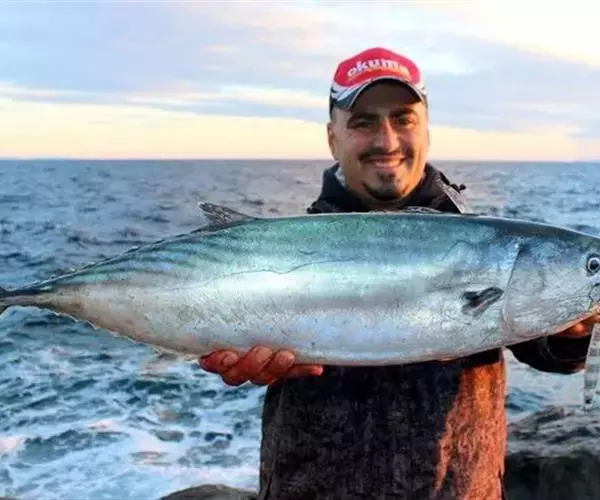 2.矶礁路亚钓钓法:采用路亚钓法施钓蓝点马鲛,因其钓具简捷,钓法刺激,自上世纪90年代后期开始至近些年来在辽东半岛较为盛行。
