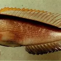 马夫鱼。成鱼体甚侧扁,背缘高而隆起,略呈三角形。背鳍鳍棘11根,第四鳍棘延长呈鞭状,鳍膜亦随之延长…