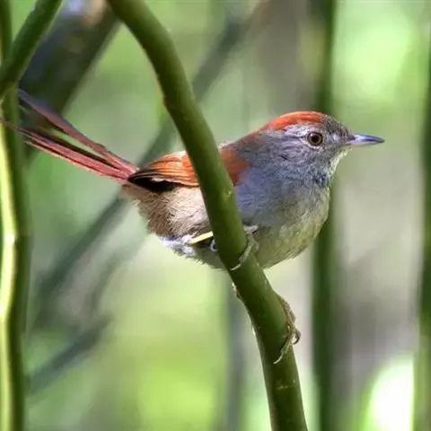 行为:留鸟。常成小群活动,有时20-30只鸟结成大群。性活泼,行动敏捷,不甚怕人,常常跳出枝头,观察周围环境,常在林下竹丛或灌丛枝叶间攀爬、跳跃。有时也到林缘耕地边灌丛中活动觅食。