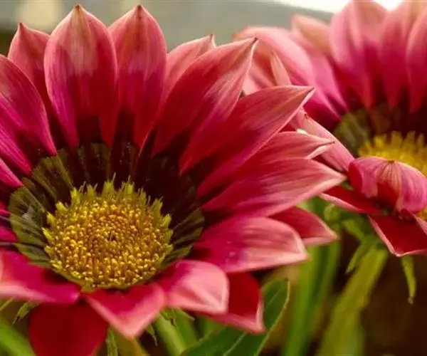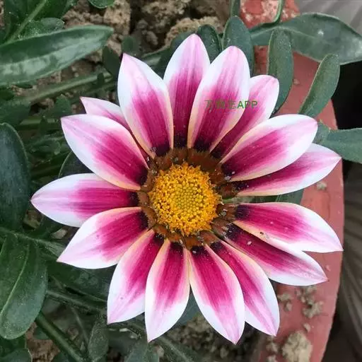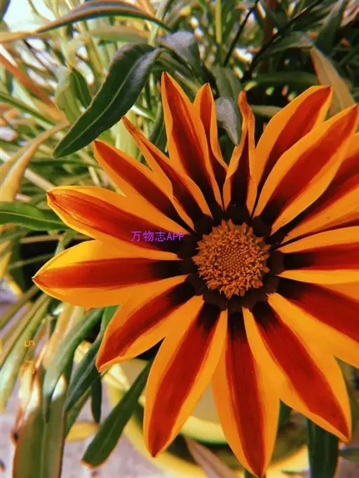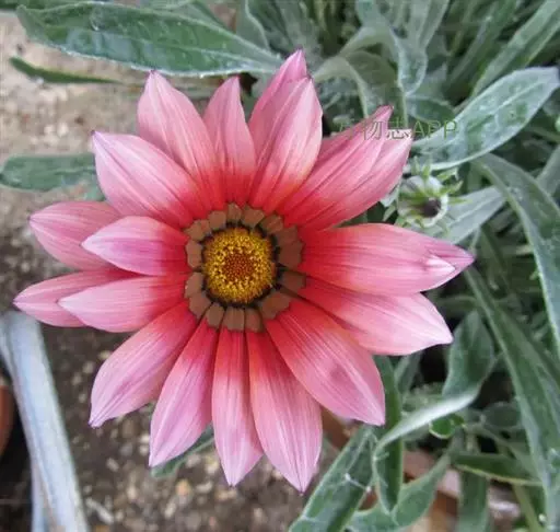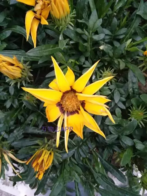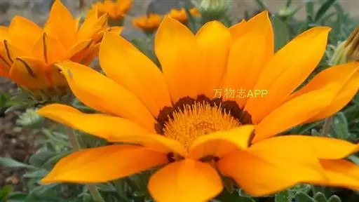 勋章菊(学名:Gazania rigens Moench)是菊科,勋章菊属多年生草本植物,株高可达40厘米,叶由根际丛生,叶片披针形或倒卵状披针形,叶背密被白毛,叶形丰富。头状花序单生,舌状花和管状花两种,花色丰富多彩,有白、黄、橙红等色,花瓣有光泽,花心处多有黑色、褐色5-10月开花。