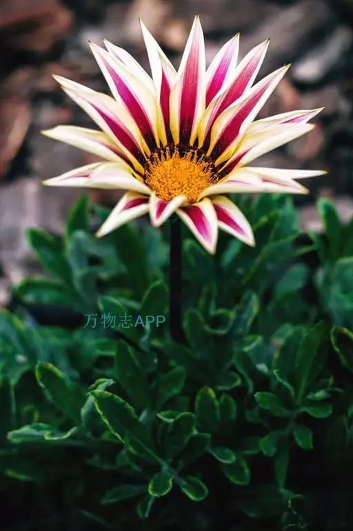 勋章菊 勋章菊属多年生草本植物,株高20-40厘米,具根茎,叶由根际丛生,叶片披针形或倒卵状披针形,全缘或有浅羽裂,叶背密被白毛,叶形丰富。