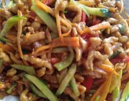 13.用干淀粉、老抽加水调成芡汁,待几秒过后起锅,放川花椒粉。