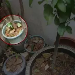 3.将熟花椒放到捣蒜器中捣成碎面备用;