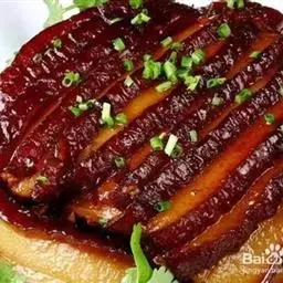 梅菜扣肉,汉族传统名菜,属客家菜 。制作材料有五花肉、梅菜、葱白、姜片等。