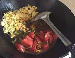 3.放入豆瓣酱炒出红油后,放入彩椒粒炒匀,然后倒入切成块的豆腐翻炒,烧约2分钟;