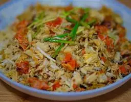 酥: 炼好的肉馅子,色泽金黄,红酥不板,一颗颗,一粒粒,入口就酥,沾牙就化。