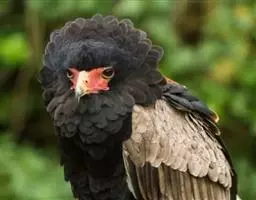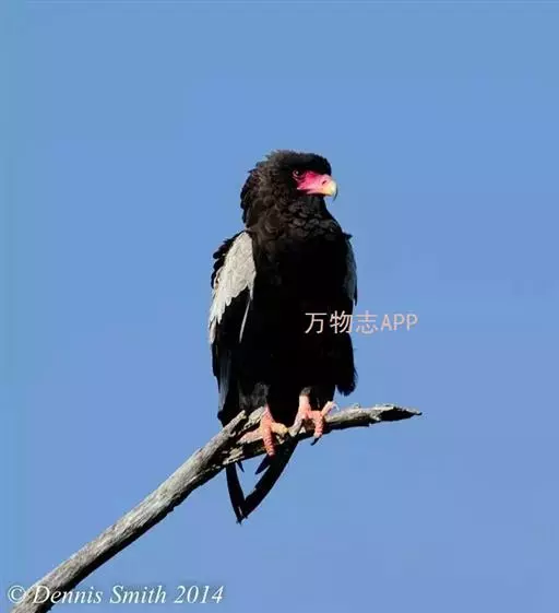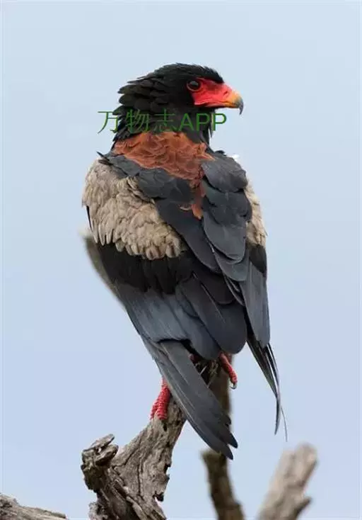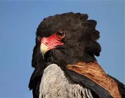 短尾雕(学名:Terathopius ecaudatus)是中等体型的鹰,短尾雕属下的唯一种,体长约70厘米,短尾巴长8-10厘米。头、颈和腹部有黑色金属光泽。背赤褐色。肩浅白至红褐色;脸红色裸露。脚强壮,橘红色。尾长仅10厘米(幼鸟尾较长)。翅上黑下白,长而尖,极宽。头部因有短而丰满的冠而显得大。