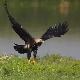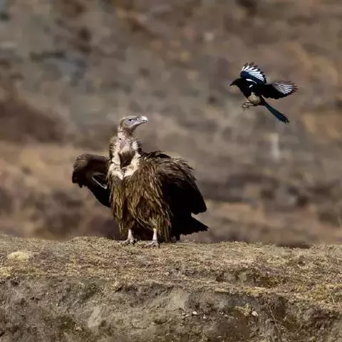 白肩雕:又名御雕,是大型猛禽。体长73-84厘米。体羽黑褐色,头和颈较淡,肩部有明显的白斑,在黑褐…