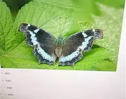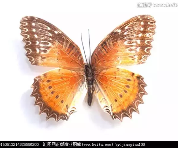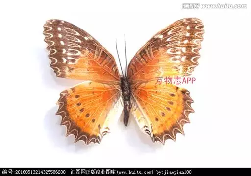 雄蝶翅正面橘红色,两翅具黑色锯状外缘。前翅中室内有几条黑色横线,中室端有2个小白斑,中域有1列“V”字形白色斑(4—5个),其外有1列白斑,黑色外缘带上具白色“(”形斑列。雌翅色淡,有的呈灰色或淡绿色。翅反面黄褐色或橙黄色斑纹特殊,两翅有淡色中横带及后中横带,其间有橄榄形黑色环列,每个环外侧有2个小黑点;前翅中室内有褐色和白色横带,其间有黑色细条纹。